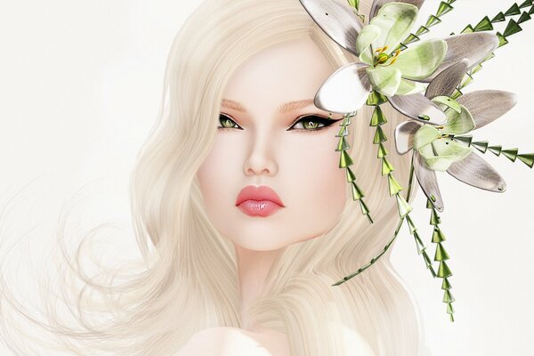 art girl flower to hairs portraits portrait rendering visualization 3d.1920 x 1320, 259 kB