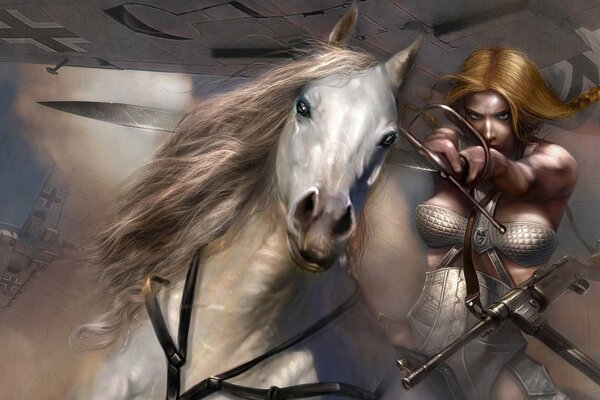 fantasy girl warrior horse1920 x 1080, 491 kB