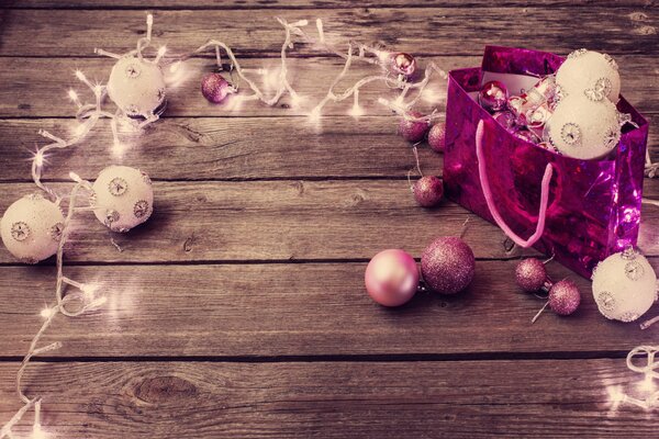 bulbs balls white pink garland bag toys christmas holidays winter new year