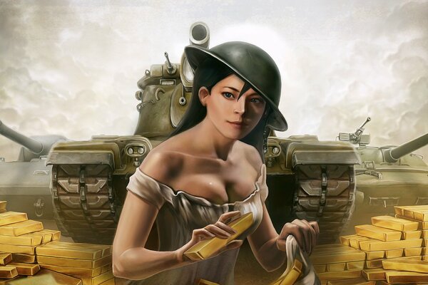 world of tanks art picture tanks girl helmet gold bars1920 x 1080, 299 kB