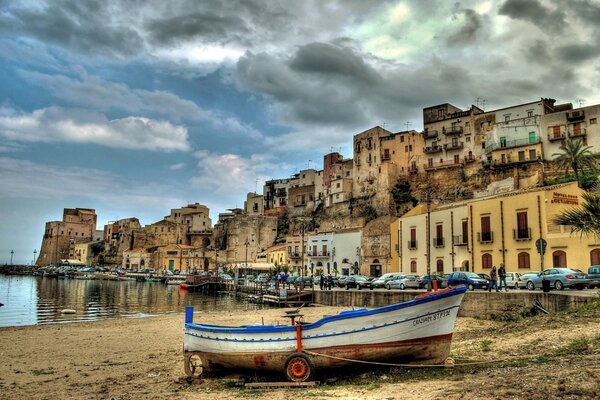 castellammare del golfo sicily italy harbor boat embankment buildings machinery car1920 x 1200, 527 kB