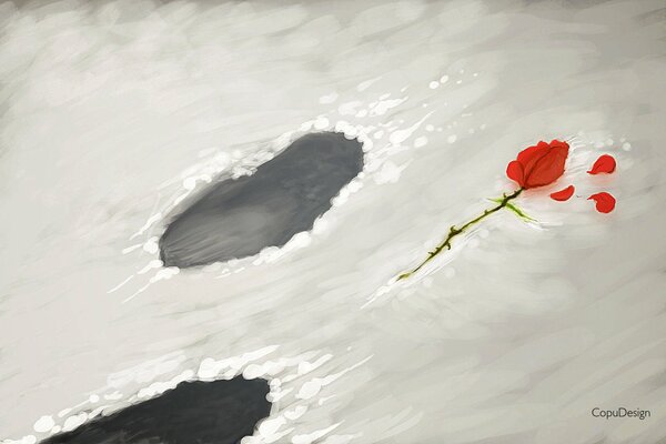 goodbye goodby snow flower rose petals traces