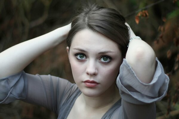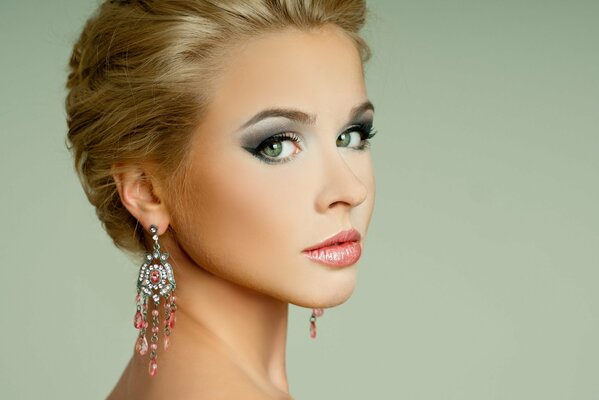 model girl blonde hair style green eyes of the arrow make-up view shoulders1920 x 1631, 250 kB