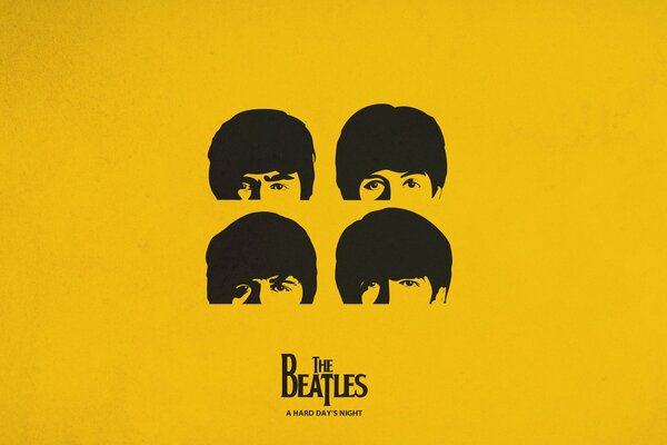 The Beatles legend music group, the cover of the quartet's face on a yellow background, people with a look in their eyes1920 x 1080, 234 kB