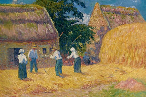henri moret threshing of grain threshing grain pattern genre mototba yard stack house people1920 x 1409, 684 kB