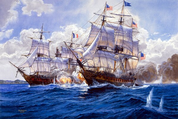 art navy painting high sea's diplomacy ships maritime fight shots guns explosions bursts to water tom freeman.1920 x 1334, 563 kB