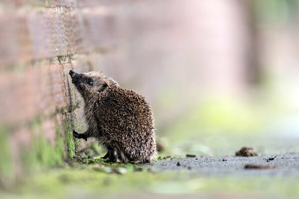 A hedgehog on its hind legs sniffs the wall1680 x 1050, 234 kB
