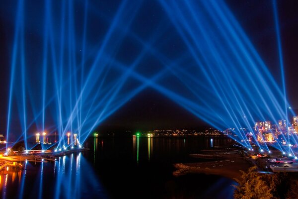 The night glow of the city is a spur in the water