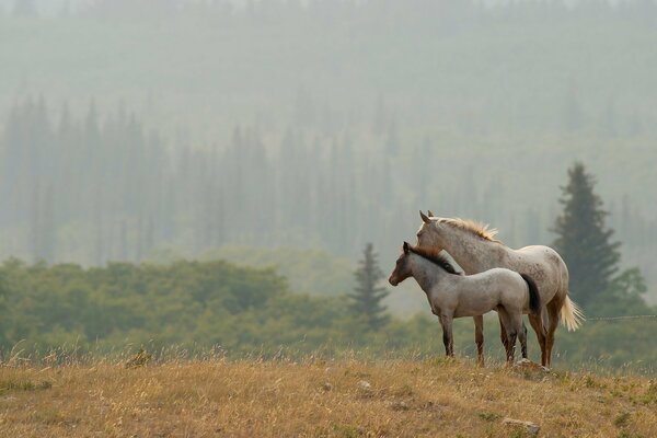 Beautiful landscape with horses. Horse with foal1920 x 1275, 260 kB