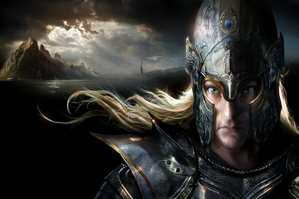 art daren horley illustration to the book warhammer black library elf helmet armor wind mountain tower