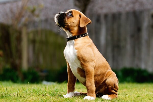 The puppy looking askance is clearly up to something