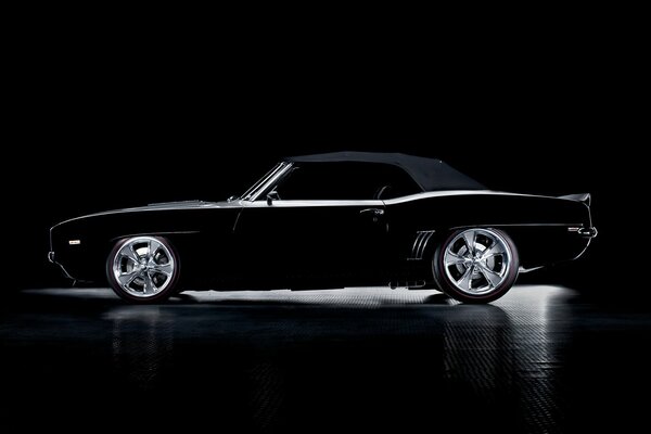 chevrolet camaro convertible black muscle car profile konvёrtibl