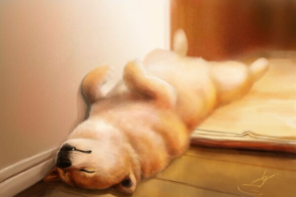 The puppy sleeps on the floor in the house1920 x 1293, 150 kB