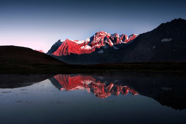 mountain lake snow red light and darkness2143 x 1200, 307 kB