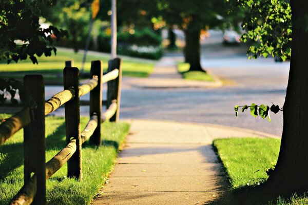 nature tree leaves fence fencing grass green sun path alley macro trees leaves sun day blur background wallpaper widescreen full screen hd wallpapers1920 x 1200, 382 kB