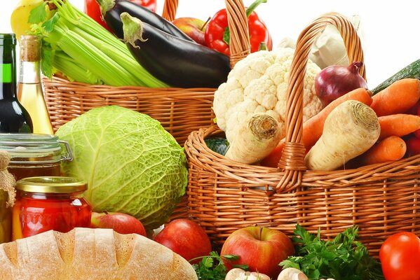 eggplant torment fruits carrots radish gas 24 basket bread red wine apples pickles green a bottle cauliflower white banks mushrooms cucumbers loba pepper cabbage