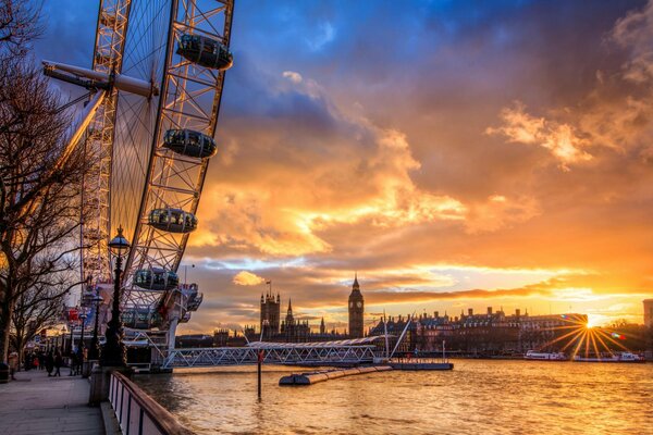 london city sunset london eye town england the london eye ferris wheel sun river clouds1920 x 1244, 457 kB