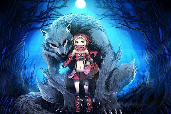 art lulu season little red riding hood girl wolf red riding hood basket shopping forest night moon1920 x 1323, 539 kB