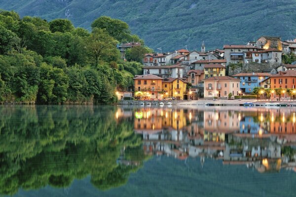 italy piedmont reflection lake building embankment mergozzo