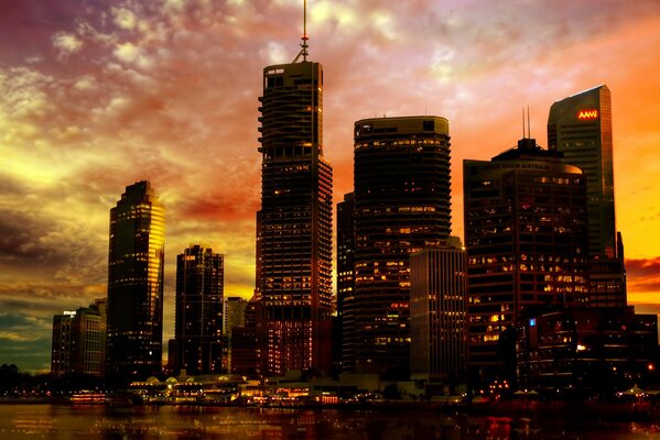 methevas sunset city australia wallpaper skyscraper city lights town sunset lights neon river embankment