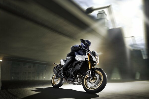 A rider makes a turn on a motorcycle1920 x 1200, 379 kB