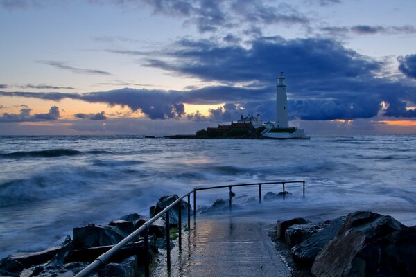 lighthouse pier beach sea ocean of the boat night twilight sunset