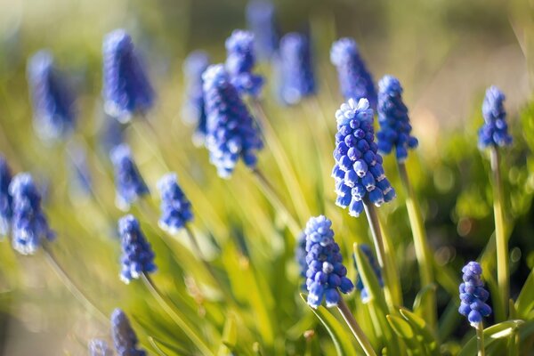 muscari blue flowers close up blur nature1920 x 1200, 229 kB