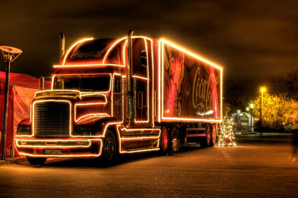 christmas truck christmas truck coca-cola freightliner machinery winter new year night lamps light lighting1920 x 1248, 345 kB