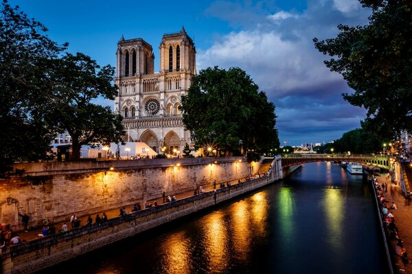 paris france notre dame de paris notre - dame de paris notre dame town night clouds bridge lamps light people river price architecture tree1920 x 1280, 561 kB
