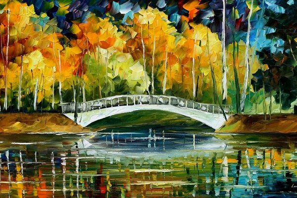 white bride new oil autumn bridge oil painting2200 x 1200, 573 kB