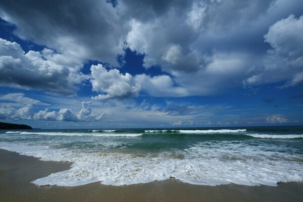 sea waves wave water beach sand sky blue clouds nature landscape1920 x 1200, 272 kB