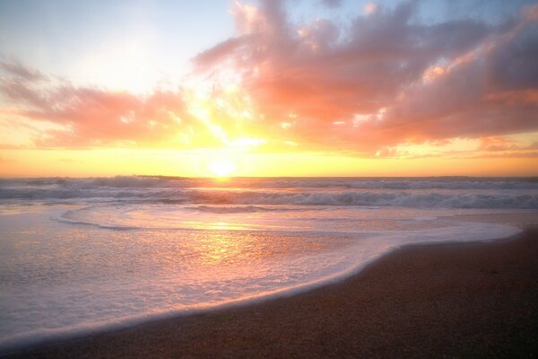 beach sea waves sun clouds pink dawn1920 x 1281, 280 kB