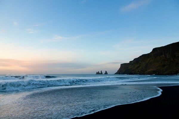 beach sand ocean water waves foam rock sky clouds birds horizon1920 x 1280, 279 kB
