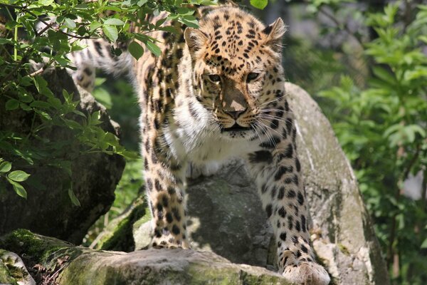 leopard far east panthera pardus orientalis face mustache bush stones spotted cat1920 x 1200, 425 kB