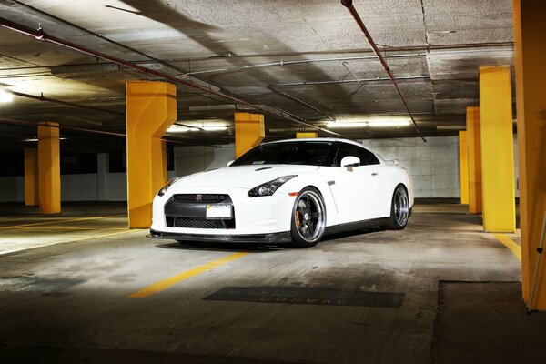nissan gtr r35 white wheels gad drives license plate front parking column1920 x 1293, 442 kB