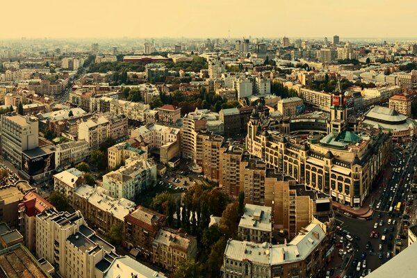 photo town kiev panorama height house buildings street car motion machinery plug people passers residents tree night horizon2076 x 1200, 749 kB