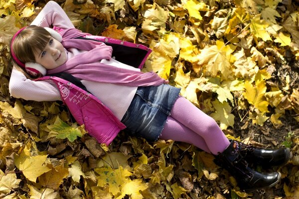 child babe girl sports nature autumn leaves headphones tights scarf pink1920 x 1248, 517 kB