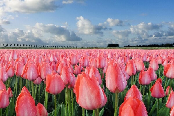 A field of pink tulips with blue sky and clouds1920 x 1080, 388 kB