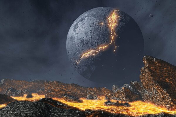 art alberto vangelista space planet lava fire destruction3022 x 1200, 160 kB