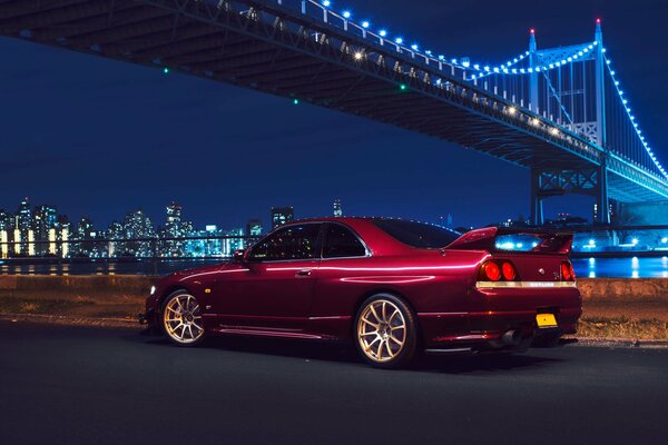 nissan skyline r33 sport car chery nyc new york bridge nigth rear1920 x 1313, 313 kB