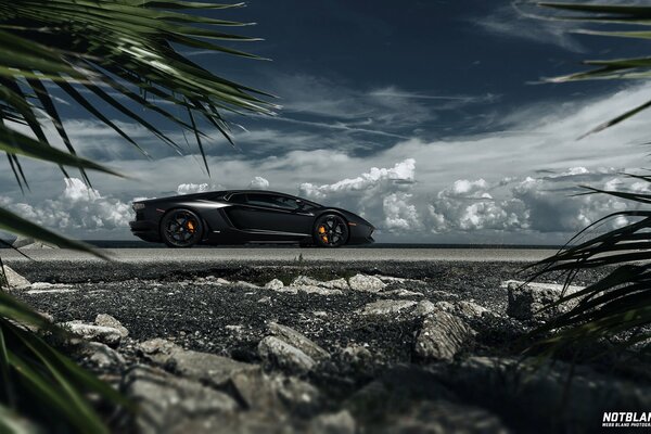 lamborghini aventador machine car auto leaves sky clouds webb bland notbland