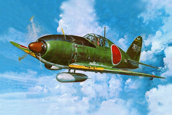 art sky japanese plane fighter-interceptor mitsubishi j2m raiden the second world war picture
