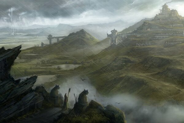 rain town castle lightning river traveler staff rock hills dragon age mabari statue2694 x 1200, 343 kB