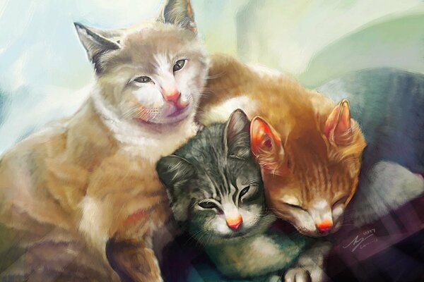 art painting cats three kote1920 x 1344, 286 kB