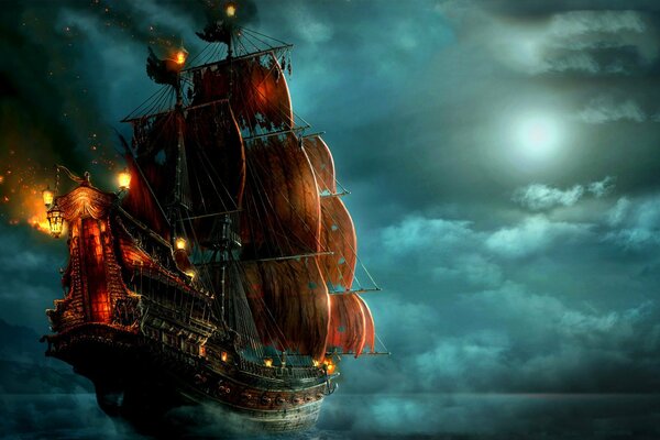 ship sea pirates night clouds moon lights1920 x 1200, 336 kB