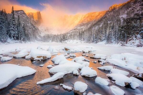 hallet peak rocky mountain national park mountain snow haze dawn forest