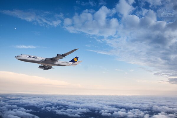 boeing lufthansa passenger plane airliner clouds flies flight in the air moon aircraft flying air1920 x 1200, 204 kB