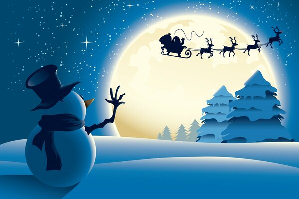 snowman snow santa claus is coming merry christmas tree new year santa sleigh star full moon trees stars reindeer1920 x 1338, 181 kB