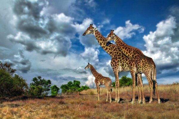 sky clouds africa giraffe savannah