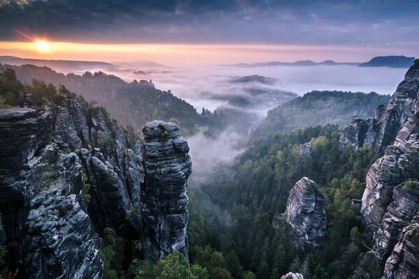 sunrise rocks saxon switzerland clouds fog mist landscape1920 x 1200, 453 kB